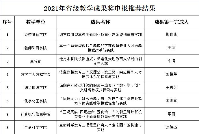 关于2021年校级教学成果奖评选结果及推荐申报省级教学成果奖的公示